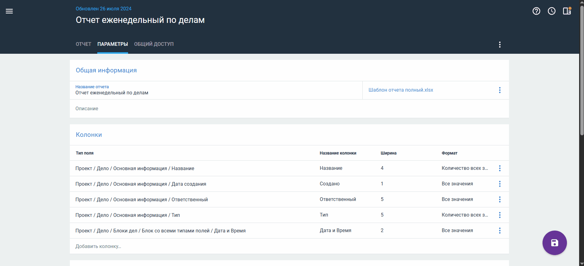 Отчет формируется только по тем проектам и делам, к которым у вас есть доступ.