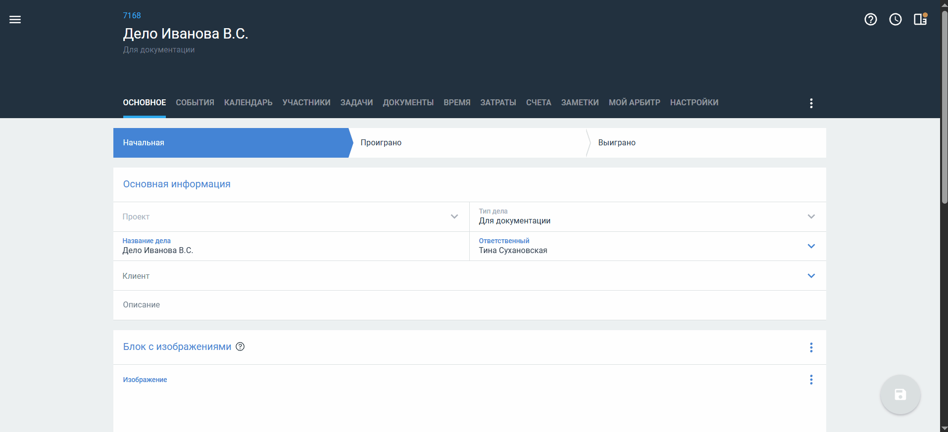 Сохранение изменений в карточке дела
