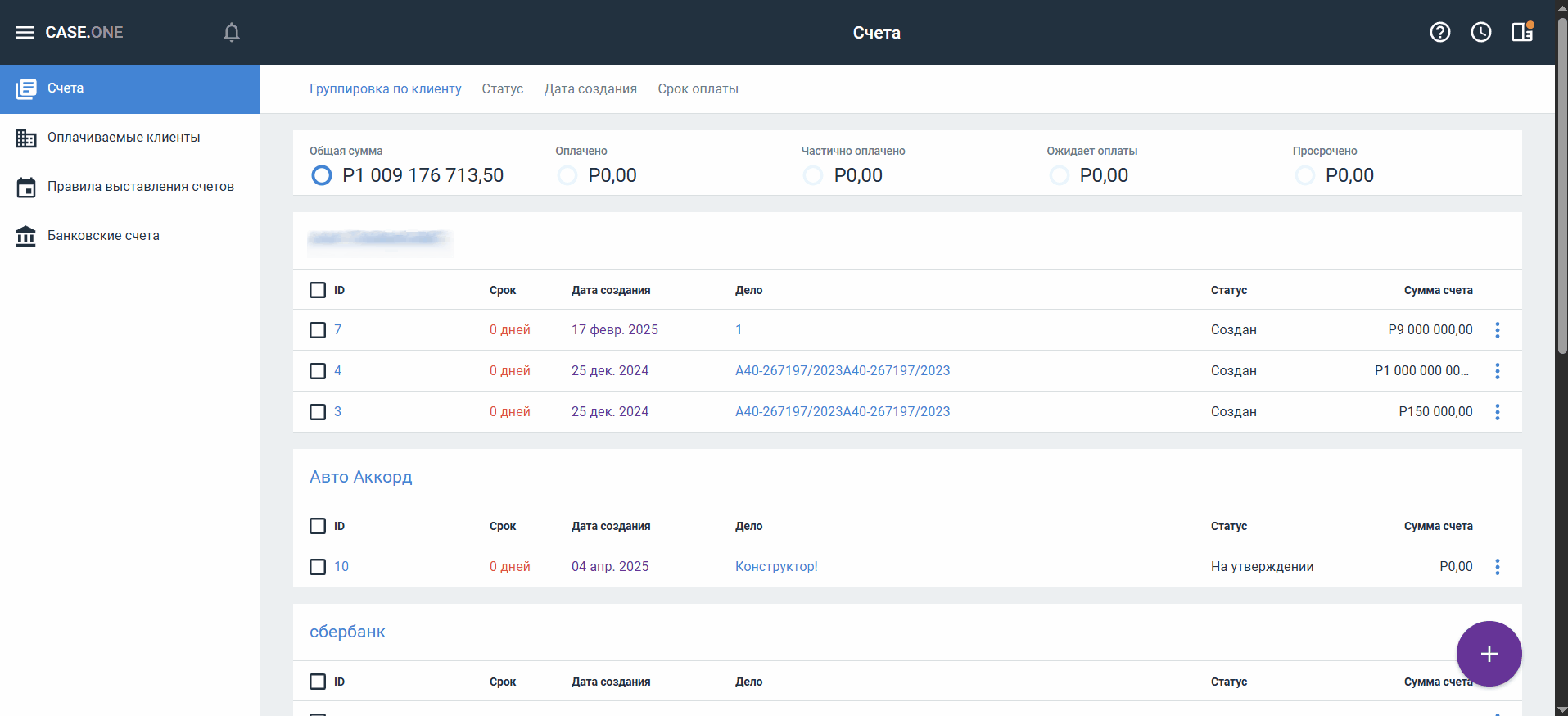 Вы можете отправить любой счет из любого статуса клиенту на электронную почту. Для отправки счетов клиентам и участникам из Case.one вам необходимо подключить свою почту (подробнее о настройке почтового аккаунта см. в статье Подключение почтового сервиса.