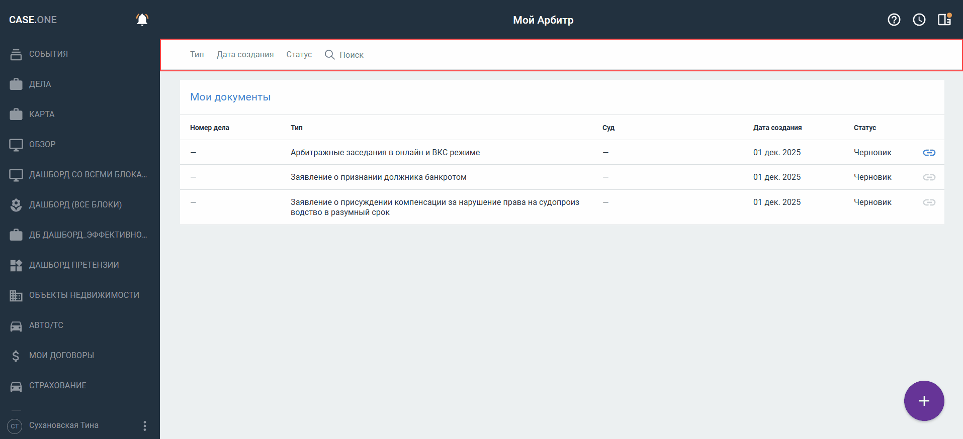 - Тип — в зависимости от типа будет доступен различный функционал в Case.one: