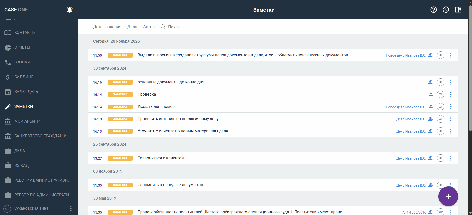 - Откройте раздел Заметки в Главном меню или откройте вкладку Заметки в карточке объекта.