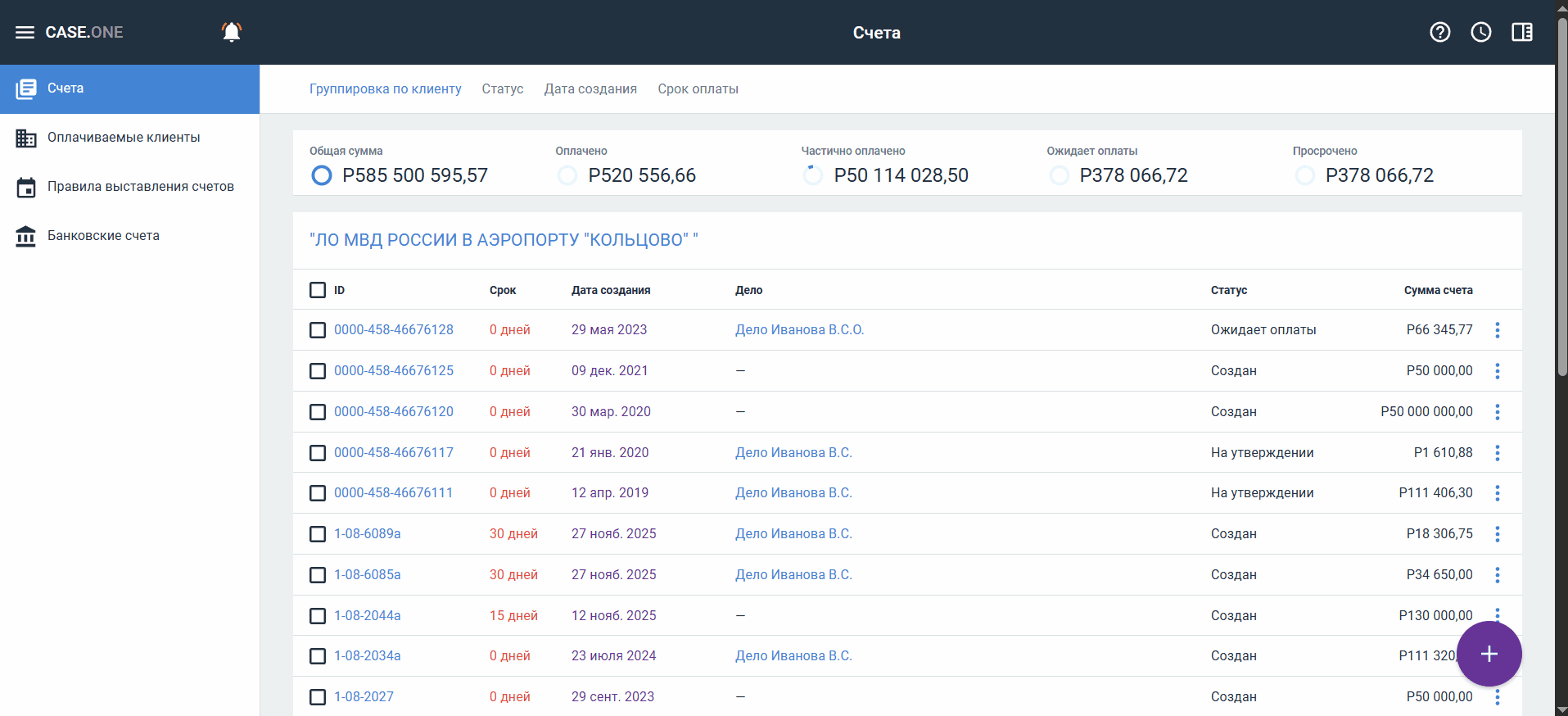 Если счет или несколько счетов находятся в статусе Ожидает оплаты или Оплачен, при попытке удаления отобразится ошибка.