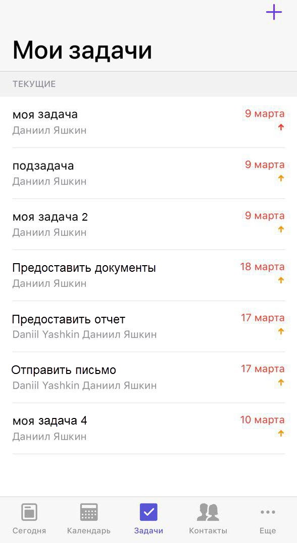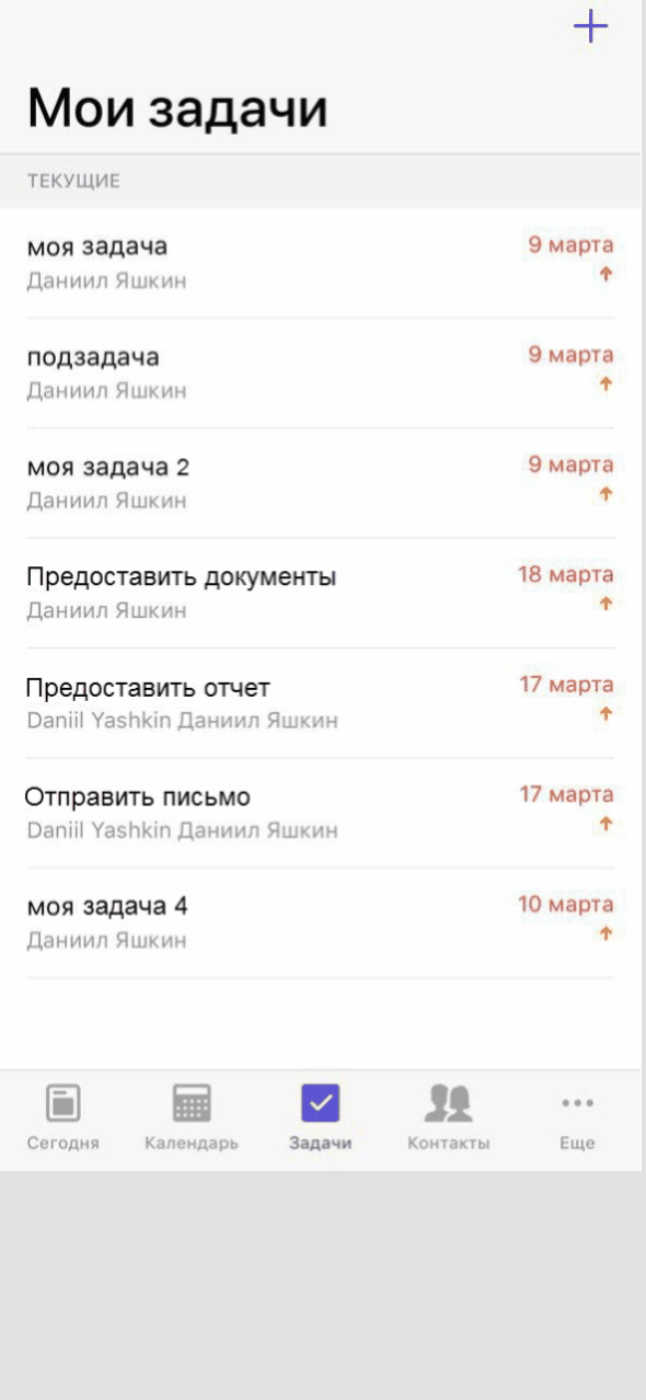 Задачи позволяют взаимодействовать с коллегами в процессе работы над делом. В списке задач приложения не отображаются задачи других пользователей и закрытые задачи.