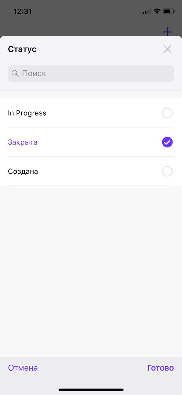 Для выполнения задачи выберите задачу из списка и проведите направо. Задача будет выполнена, статус задачи автоматически изменится на Закрыта.