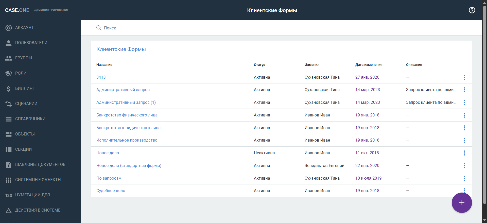 В списке форм отображается следующая информация о каждой форме клиентских запросов: