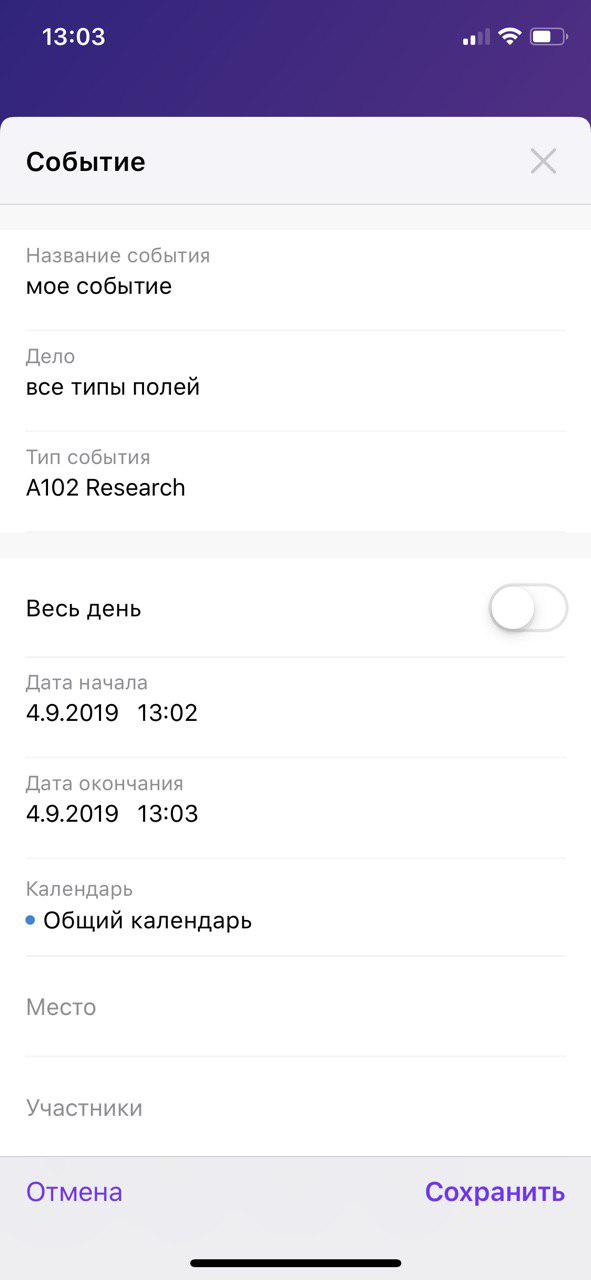 Для просмотра события или задачи выберите их из списка. Откроется форма просмотра.