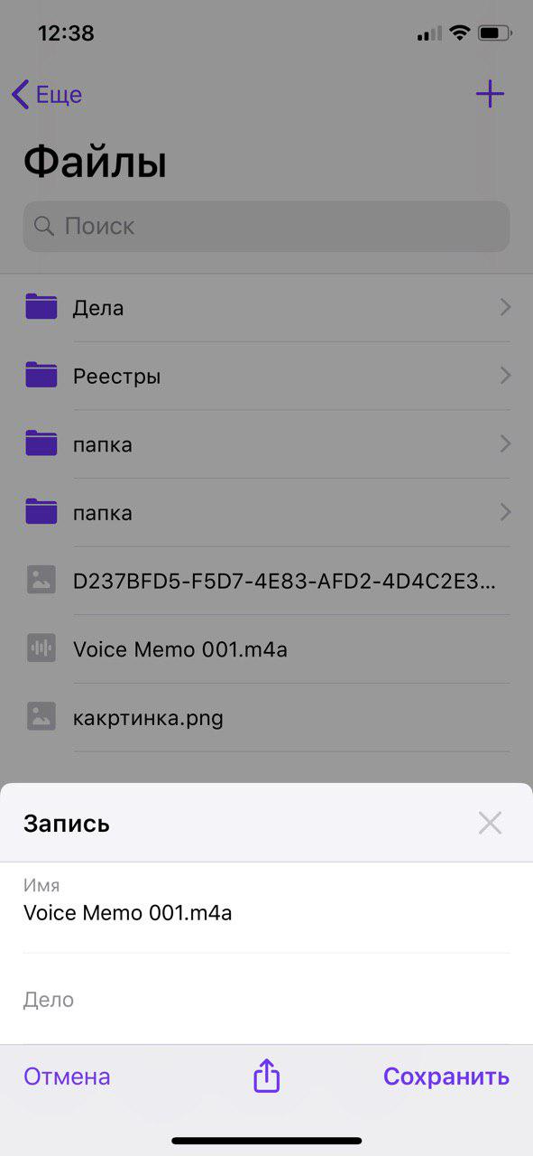 В разделе Файлы и на вкладке Документы карточки дела хранятся не только документы, но и голосовые записи.