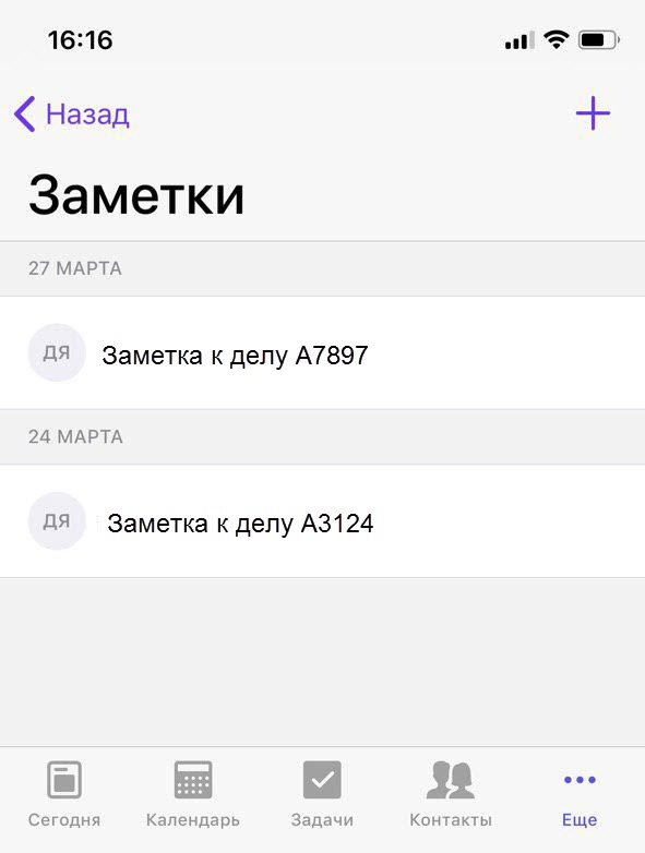 - Публичные заметки видны всем пользователям, у которых есть доступ к делу.