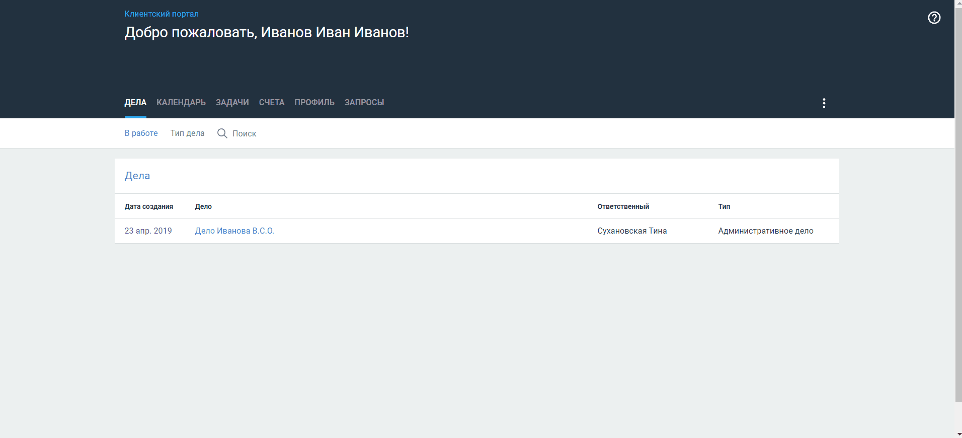 Дела — список дел, к которым у клиента есть доступ.