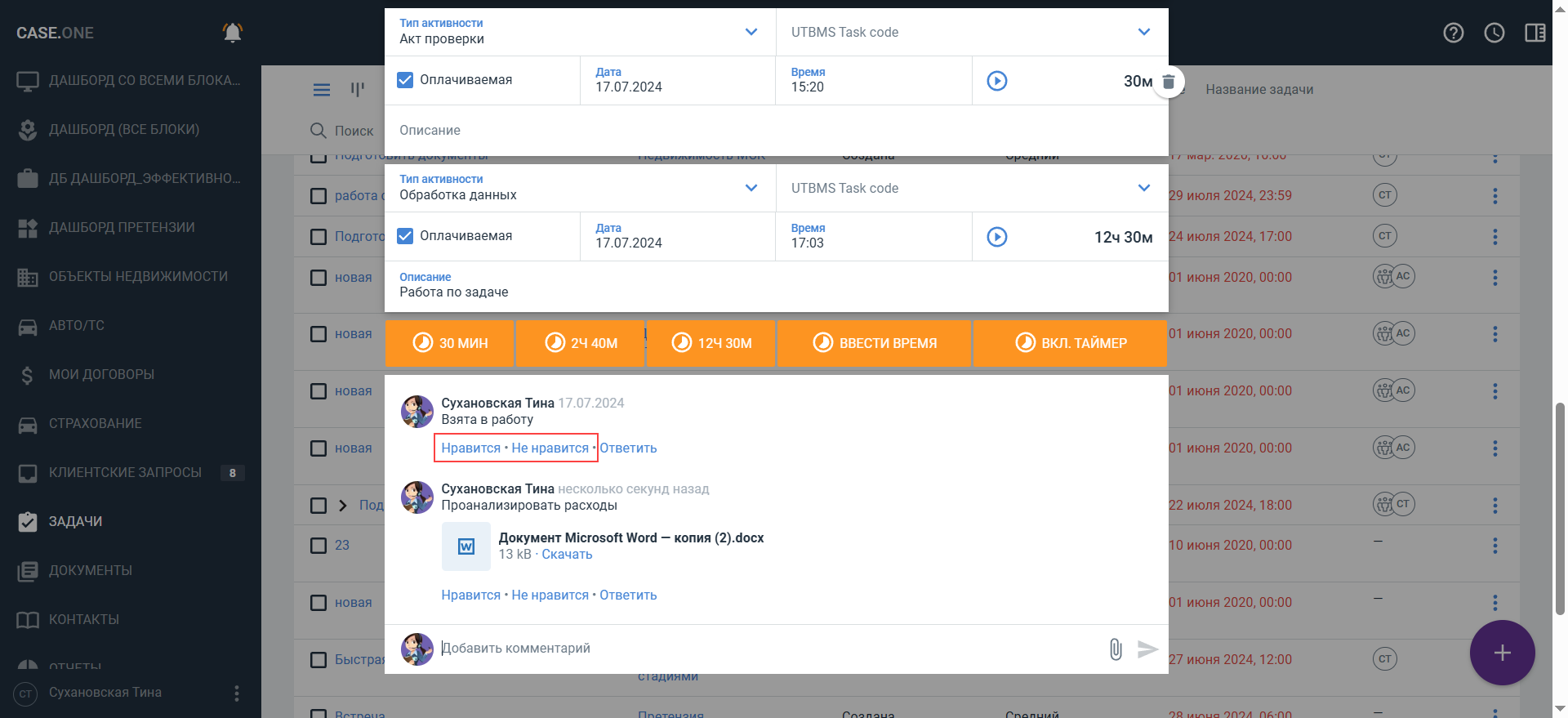 Вы можете добавлять и просматривать комментарии к созданным задачам, подзадачам, событиям, заметкам, проектам, документам и активностям.