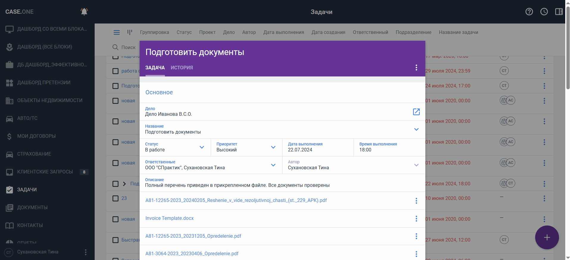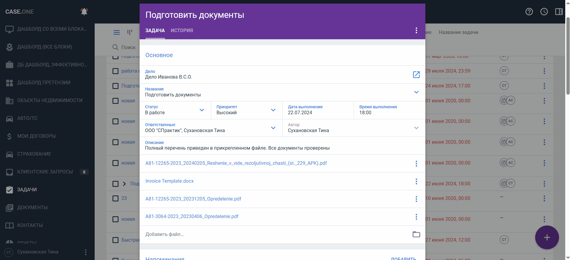 При удалении дела, объекта или иной сущности (событие, задача) из "Колокольчика" будут автоматически удалены все уведомления о комментариях в этом деле, объекте или иной сущности.