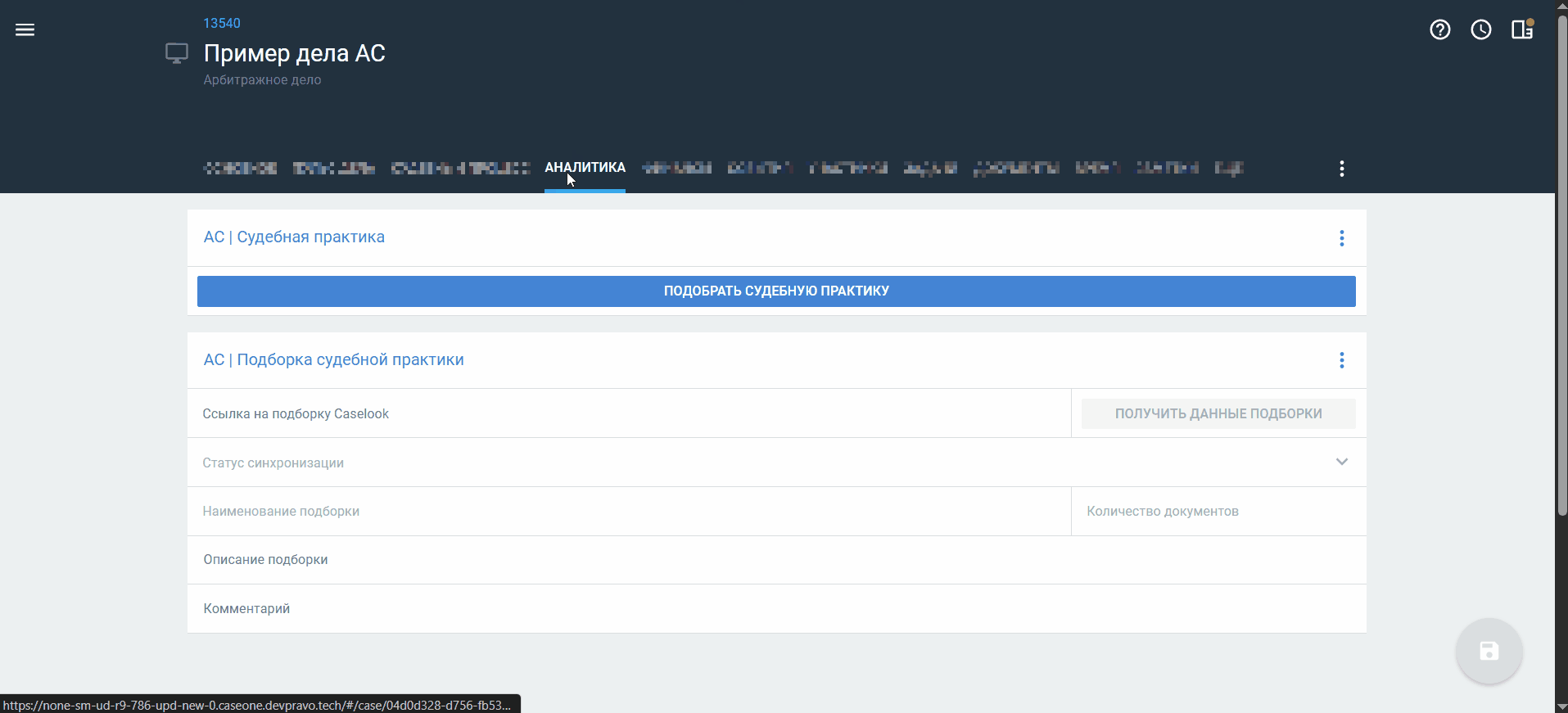 Вернитесь в карточку дела и вставьте ссылку в поле Ссылка на подборку Caselook блока АС Подборка судебной практики.